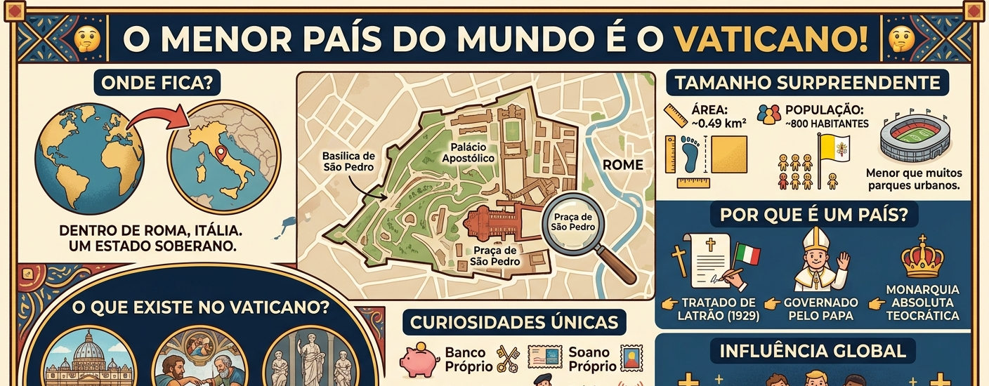Quando pensamos em países, normalmente imaginamos grandes territórios, milhões de habitantes e vastas paisagens. Mas você já parou para pensar qual é o menor país...
