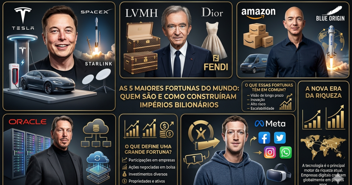 As 5 maiores fortunas do mundo: quem são e como construíram impérios bilionários