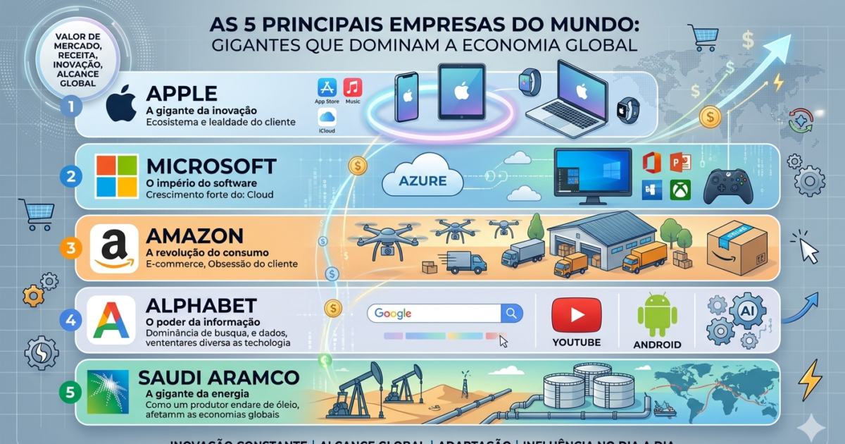 As 5 principais empresas do mundo: gigantes que dominam a economia global