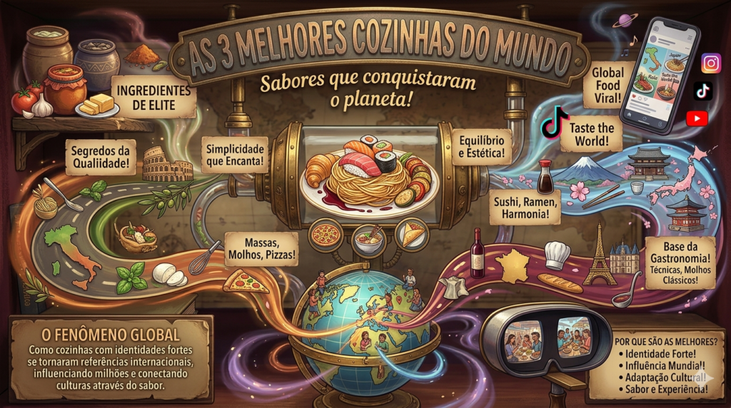 A comida é uma das maiores expressões culturais da humanidade. Mais do que apenas uma necessidade básica, ela representa história, tradição, identidade e até mesmo estilo de vida. Cada país tem seus próprios sabores, técnicas e ingredientes, mas algumas cozinhas conseguiram ultrapassar fronteiras e conquistar o mundo inteiro.