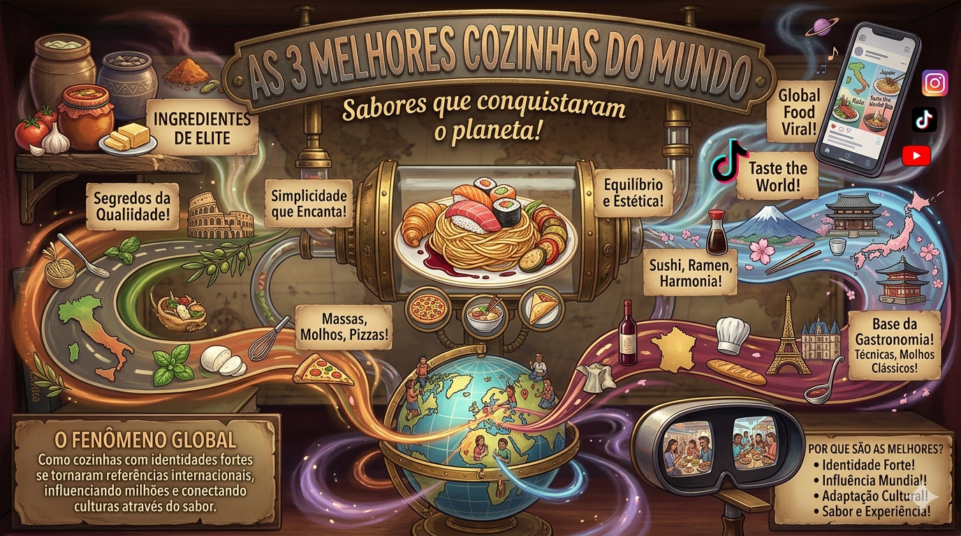 Seja pela diversidade, pelo sabor ou pela influência global, algumas culinárias se destacam como verdadeiras referências internacionais. Neste artigo, você vai conhecer as 3 melhores cozinhas do mundo, aquelas que fazem mais sucesso globalmente e que influenciam milhões de pessoas todos os dias.