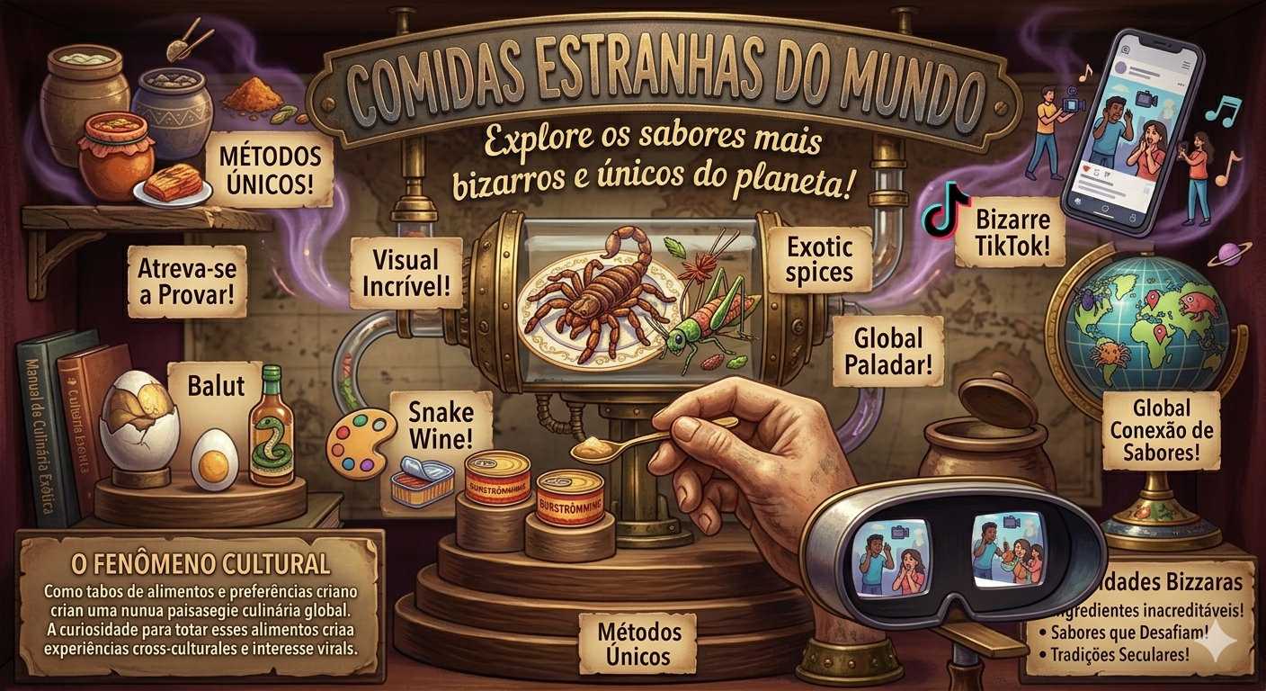 Neste artigo, você vai conhecer algumas das comidas mais estranhas do mundo — pratos curiosos, exóticos e até chocantes — que fazem parte da tradição de diversos países. Prepare-se para uma verdadeira viagem gastronômica que vai desafiar seus sentidos e mudar a forma como você enxerga a comida.