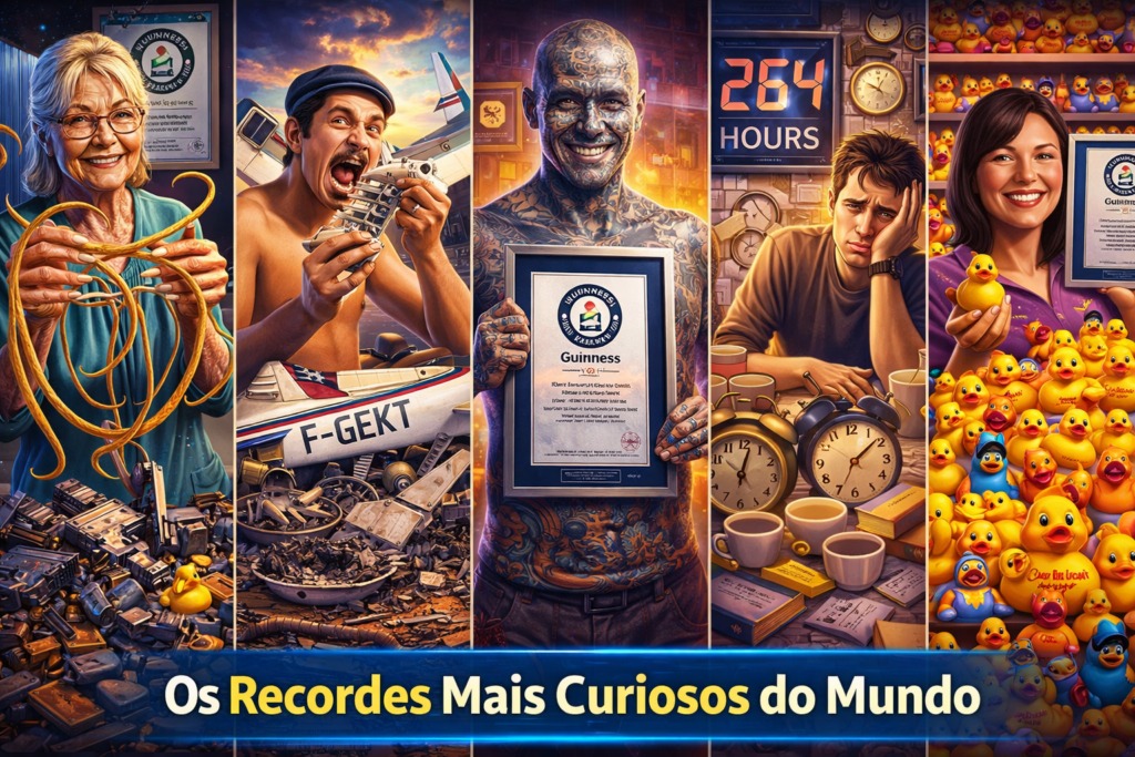 Prepare-se para conhecer os 5 recordes mais curiosos do mundo, histórias que misturam talento, dedicação, bizarrice e muita criatividade. Você provavelmente nunca imaginou que alguém seria capaz de fazer isso.